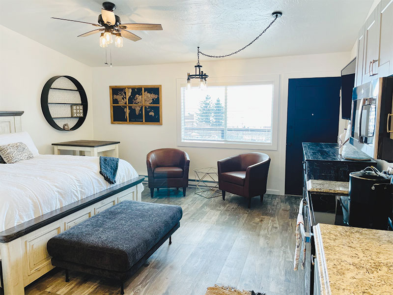 Seafarer Suites has sixteen Studios and Suites to fit the many needs of our Alaskan Adventurers. We offer One, Two, Three, and Four Bedroom Suites, and Studios all newly remodeled in 2021. You can view availability by clicking on the “Book Now” button beside each room description. We pride ourselves on being inclusive and client centered with NO added cleaning fees or hidden charges in your reservation – just the standard local tax when you book through our site.